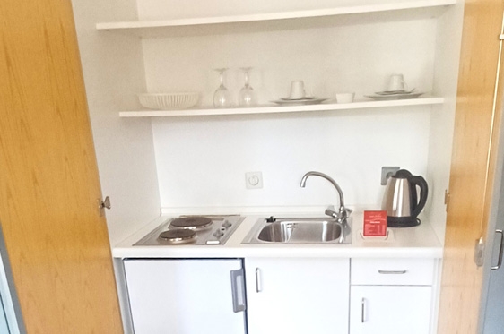 1-persoonskamer balkon (1-1 persoon): ca. 20 m2 en voorzien van 2-persoonsbed, tv en WiFi. Kitchenette met 2 kookplaten, koelkast en waterkoker. Badkamer met douche en toilet. Balkon.
