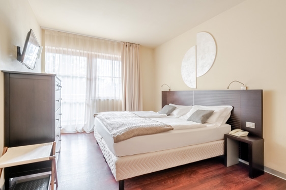 2-persoonskamer (2-2 personen): type Classic, min. 15 m2 en voorzien van 2-persoonsbed, tv, WiFi en kluisje. Badkamer met douche, föhn en toilet.