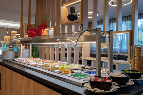 Je verblijft op basis van halfpension: welkomstdrankje op de aankomstdag. In de ochtend een ontbijtbuffet. Het diner bestaat uit een 4-gangen keuzemenu of een avondbuffet. Kindermenu.