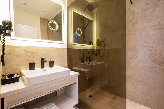 2-persoonskamer (2-2 personen): min. 22 m2 en voorzien van 2-persoonsbed, airco, tv, WiFi, koelkast en kluisje. Badkamer met douche, föhn en toilet.