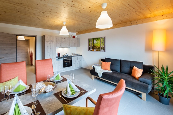 2-kamerappartement (2-4 personen): min. 65 m2 en voorzien van woonkamer met 2-persoonssofabed, zithoek, tv en WiFi. Keuken met fornuis, koelkast, oven, vaatwasser, koffiezetapparaat en waterkoker. Slaapkamer met 2-persoonsbed. Badkamer met douche en föhn. Apart toilet. Balkon of frans balkon.
