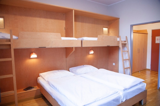 4-persoonskamer (4-4 personen): min. 25 m2 en voorzien van 2-persoonsbed, stapelbed, tv, WiFi en kluisje. Badkamer met douche, föhn en toilet.