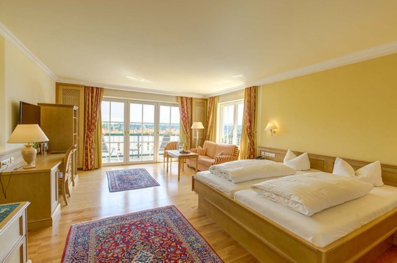 4-persoonskamer (2-4 pers.): type Residenz Inntalblick in Alpenhotel Speckbacher Hof, min. 50 m2 en voorzien van 2-persoonsbed, 2-persoonssofabed, zithoek, tv, WiFi en kluisje. Badkamer met bad/douche en föhn. Apart toilet. Deels met balkon.
